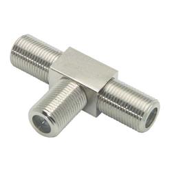 此款F母頭3向T型轉接器用于將普通源的信號傳輸到兩個不同設備。3個端口的F型插座接口都特別適合具有許多用途的F型公頭端接線纜。