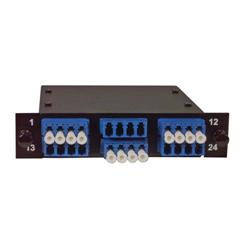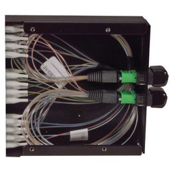L-com's High Performance, Space Saving, FSP Series MPO Fiber Optic Cassettes, are ideal products for connecting multi-fiber MPO trunk cables and splitting them out to various patch cables. Each cassette comes fully populated internally with pre-terminated and tested MPO breakout cables, and are designed for fast and easy field installation with minimal training. This Singlemode Model is designed for OS1 (9/125) applications. Installation consists of mounting the cassettes into any of our FE series Wall Mount, and Rack Mount, Fiber Enclosures, FSP Series Rack Panels, and FSP DIN-Rail Mount Enclosures. Then after plugging in your MPO cable into the MPO-12 port found on the back of the cassette, you can then begin plugging your patch cables into the 24 LC ports on the front of the cassettes. 特征