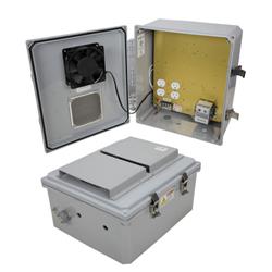 14x12x06 Polycarb Weatherproof NEMA 3R Enclosure, 120VAC Mount Plate Adjustable Heat & Fan Dark Gray
