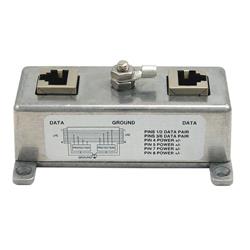 The HGLN-CAT5-2 provides lightning and surge protection for CAT5 data applications. The unit is compatible with industry-standard IEEE 802.3af Power-over-Ethernet (PoE) devices and 10/100 Base-T Ethernet networks, providing protection to both Ethernet data pairs as well as the PoE DC power feed. High speed semiconductors clamp any voltage, positive or negative on the wires. The limits are +/- 15 volts on pins, 1, 2, 3 and 6 and +/- 58 volts on pins 4, 5, 7 and 8. The unit is compatible with both normal and inverted polarity voltage PoE equipment. Most PoE capable equipment is not protected from surges on it's CAT5 cable. This lightning surge protector is compatible with Cisco legacy network appliance products like Access Points, DC Injectors and other equipment supporting reverse polarity PoE pinouts. EMI Noise Suppression The HGLN-CAT5-2 features shielded RJ45 jacks. This along with the HGLN-CAT5-2's metal housing helps reduce the effects of EMI interference. Additional features include a ground lug and terminal is provided directly on the lightning protector housing providing superior grounding. For maximum protection from lightning on long cable runs, two HGLN-CAT5-2 can be used, one at each end of the cable. For additional information and complete specifications, click the Data Sheet link below. 特征