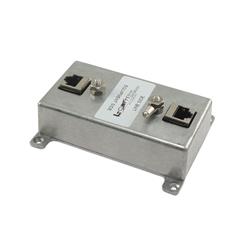 The HyperLink HGLN-CAT5EJW Lightning Protector provides superior lightning and surge protection with improved frequency response for indoor 10/100 Base-T Ethernet networks. In addition, the unit is compatible with 802.3af Power-over-Ethernet (PoE) devices. Integral to the design is protection for the four Ethernet data pairs and the PoE DC power feed. This unit supports normal and reverse polarity PoE used in some Cisco Access Points. The HGLN-CAT5EJW is compatible with Wireless Access Points, Access Servers and Routers, with or without Power-over-Ethernet (PoE) functionality. This protector is also available for 15 Volt and 24 Volt PoE applications, see model HGLN-CAT5EJW24. The unit features a low capacitance diode array that can withstand large surge currents. The design utilizes a Thyristor diode which switches to a low impedance state once triggered. This offers superior power handling capability compared to TVS or Zener diode based designs. The limits are +/- 58 volts on the four cable pairs. The HGLN-CAT5EJW features shielded RJ45 jacks. This along with the unit's metal housing helps reduce the effects of EMI interference. A ground lug and terminal is provided directly on the lightning protector housing, providing superior grounding. A second ground and terminal is provided for strapping multiple units together. This protector is also available in the following versions: For outdoor use with RJ45 Jacks, AL-CAT5EJW 特征