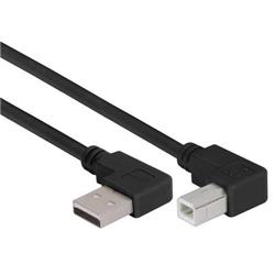 直角型USB线缆,左出线A型公头/左出线B型公头,黑,0.3米